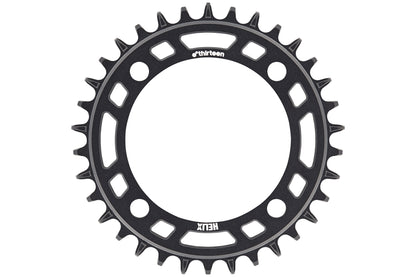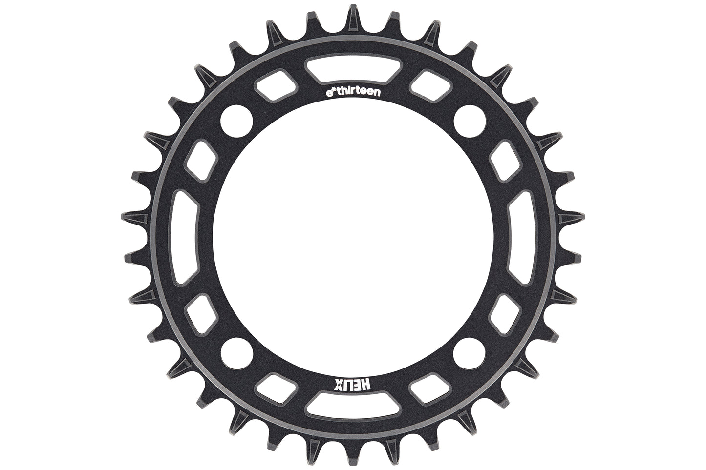 The Helix e*spec 104BCD chainring features a lightweight, stiff, and durable 7075-AL construction and e*thirteen's latest M4 narrow-wide tooth profile for excellent chain retention and wear life. Helix performance and an affordable price make this the perfect match for any 104BCD spider or the e*thirteen Turbocharger spider-bashguard.